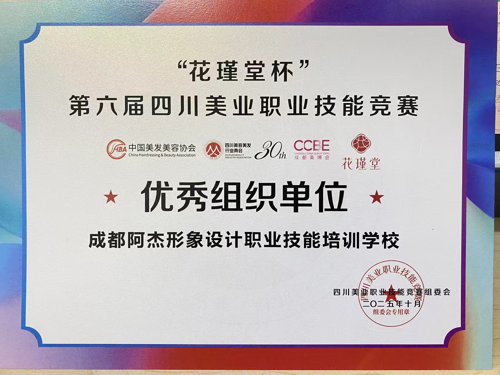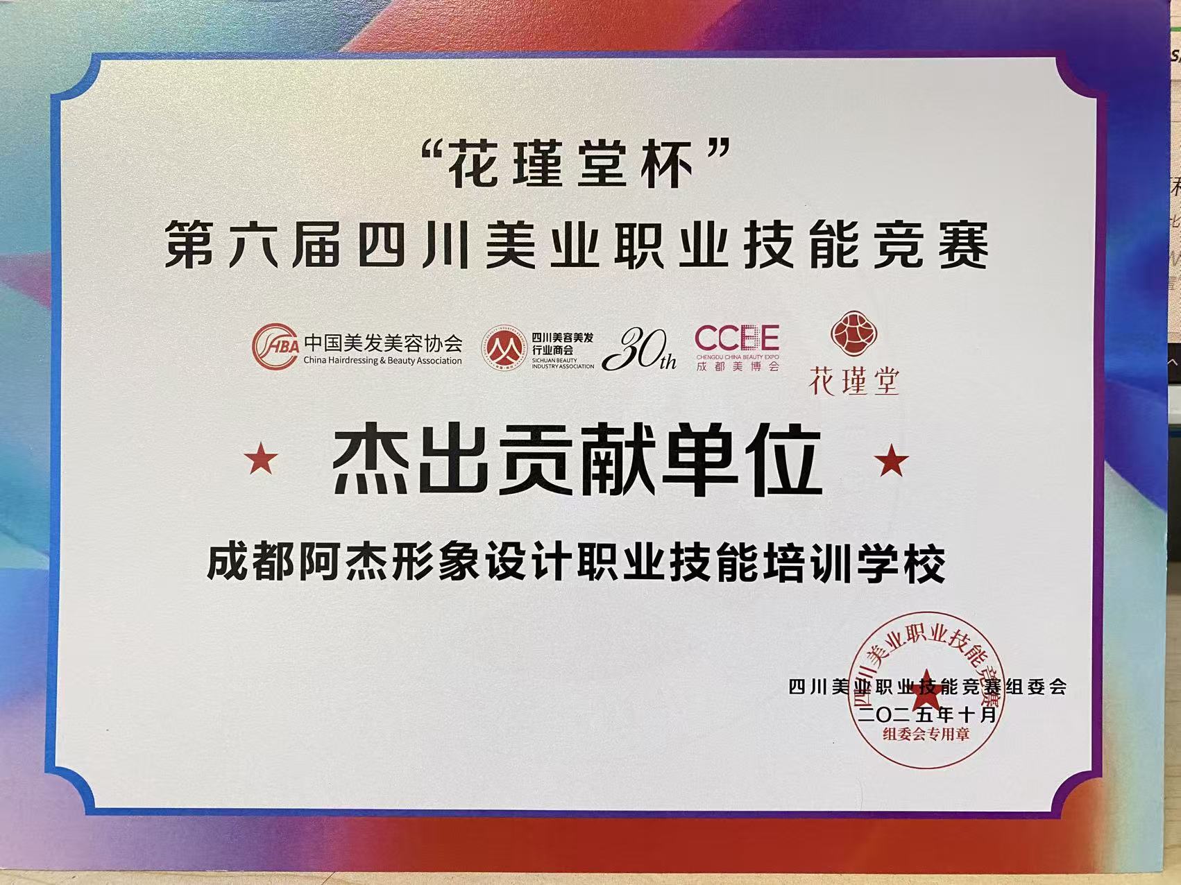此次赛事中,阿杰美发学校不仅培育出优秀参赛选手,更以专业担当助力行业发展——为2025第四届中国美业商协会会长高峰论坛及本次技能竞赛提供全程志愿者服务,凭借出色的组织协调能力和专业素养,荣获大赛组委会颁发的: